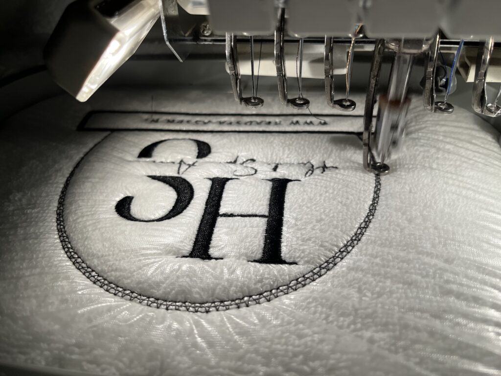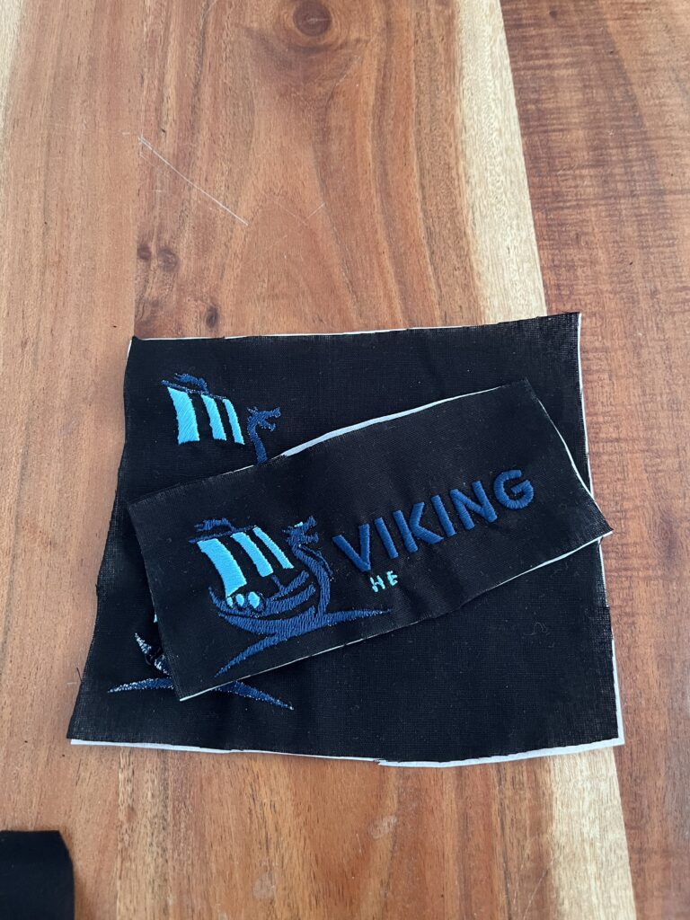 Het logo wordt met zorg op het gekozen textiel geborduurd.